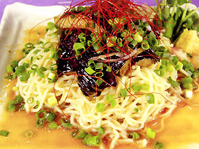 今後は今貰っている奨学金(授業料半額免除)を維持しつつ、地道な倹約生活を続けることになりそうです。 月の生活費が$$$、車の諸費が$$$...と考えると頭が痛いですが、これも将来への自己投資です。この歳になっても好きなことができている幸運に感謝しつつ、夢実現に向けて日々精進です。 さて今日のNetGourmetですが、そろそろ"冷やし中華の季節"ですね、と言う訳で東京・立川にある中国料理 香来の揚げナス冷やし中華。 食事は大学のカフェで食べてますが、今日はちょっと不思議な集団と一緒に...