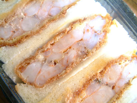 自分の場合、結構早起きで、就寝は深夜1,2時位になる為、自分が部屋に戻ると大体彼は寝ていますが、起きている特は、まず100%TVゲームをしているか、TVを見ている姿しか見たことがありません。また起きてすぐにゲームは始めるのも日課のようで、何も言わずに起きてきて、顔も洗わず、口も濯がず、一目散にゲームに向かいます。 一体、いつ勉強してんだろう? これは謎です。 まあ愚痴っぽくなってしまいましたが、自分の生活を脅かすような行動や発言はないので、お互いに無干渉のうちにもうすぐ寮生活も終わります。 今日のNetGourmentは中央区銀座・木村屋本店の"海老カツサンド" まだまだコミュニケーション不足を実感しています。英語は確かに下手なのですが、クラスの中でネイティブの学生に比べるとまだまだ馴染め切れていない気がするのです。